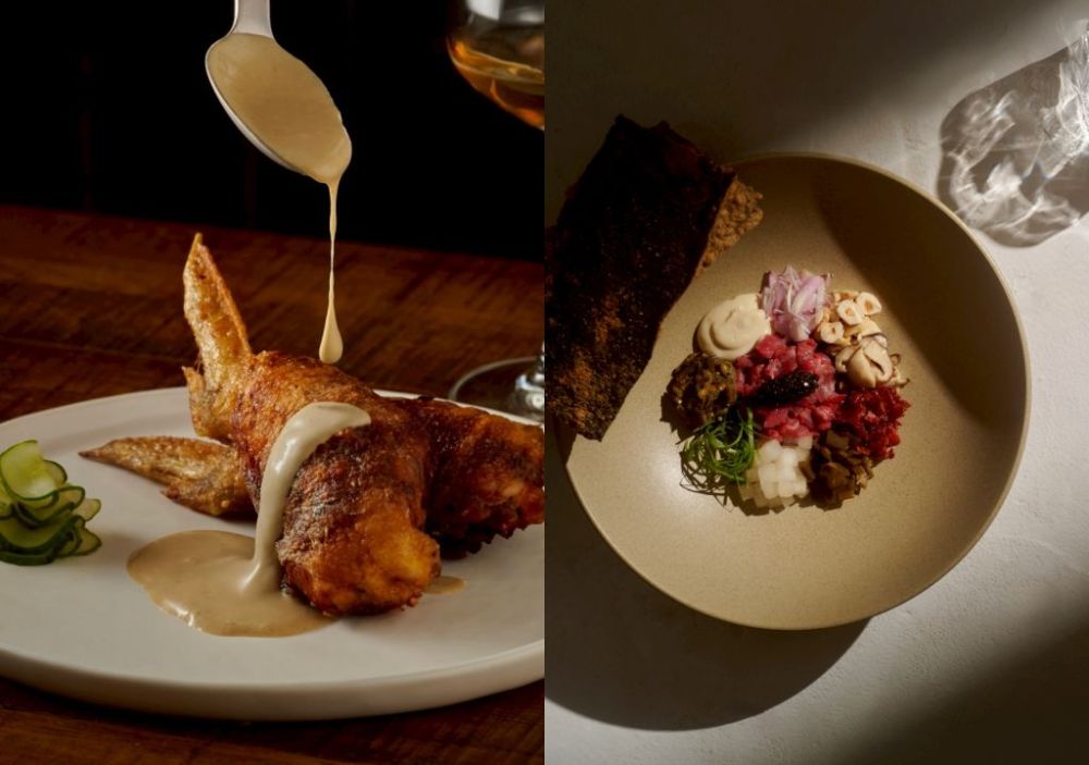 HIDDEN FEAST將熟悉韓式小吃轉化為精緻餐桌驚喜,每一口都兼具街頭熱情與高雅演繹,隱藏於雞翅中的盛宴寫下回味篇章。去骨雞翅內裹入韓式泡菜炒飯,外皮酥脆內餡酸香帶辣,與濃郁起司醬完美呼應,再以芝麻與醃黃瓜片增添清爽層次。