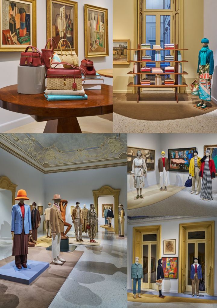 全新袋款與皮具精品細膩融入整體布局中,令這場古今對話更加精彩。獨特混色面料、透現藝術感印花圖案與細膩同色系配搭,與紡織紋理同樣豐富迷人,大地色調到充滿陽光氣息色彩,交織出萬花筒般色彩盛宴。
