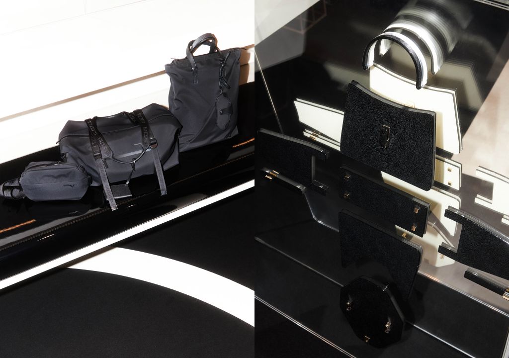 琳琅滿目袋款及皮具整齊排列在精心挑選的古董義大利胡桃木與漆木家具,令人眼前一亮。這場匠心獨運的時裝展讓LORO PIANA的過去與當下能展開對話,也讓奇特里奧宮與館內稀世藝術珍藏巧妙互動。
