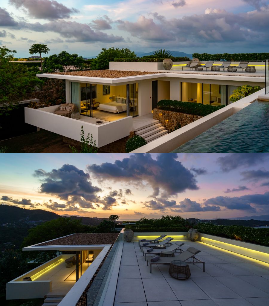 SAMUJANA薩穆加納規劃接待6~16人23間別墅,分別錯落在面海緩坡,周邊綠意圍繞,每間別墅住房空間寬敞明亮,配備完善的廚房、客廳與泳池。公共休息區刻意設計半開放空間視野開闊,越過無邊際泳池可望向蔚藍海景。