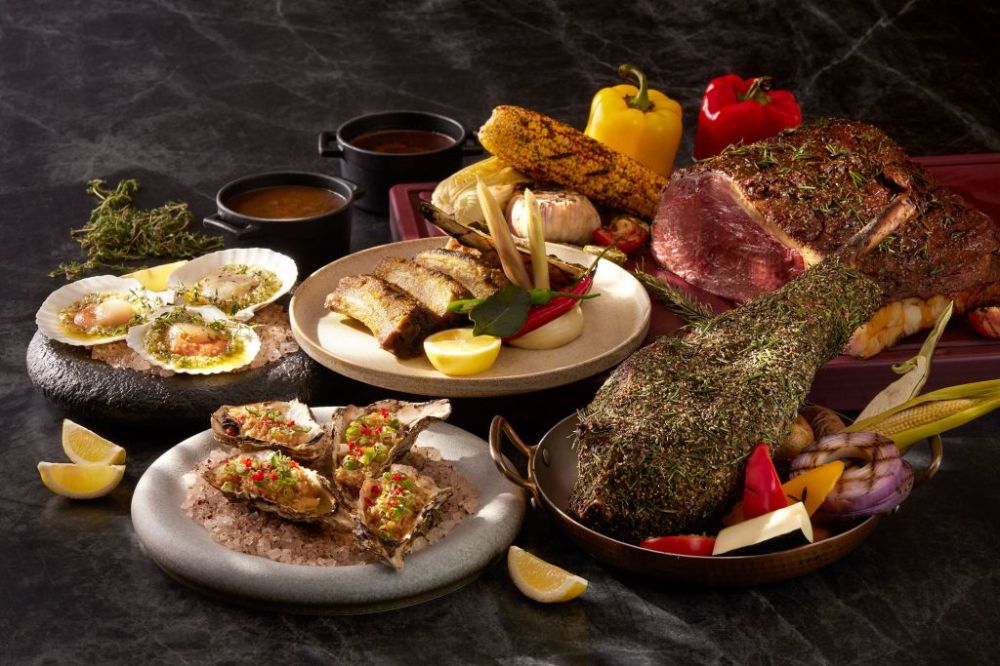 鐵板檯現煎宛如一場炙燒秀,爐烤檯以巴西燒烤為靈感,鮮香四溢,海味與奶香交織濃郁層次。熱饗區奢華佳餚,義饌區以窯烤爐現烤披薩搭配現炒義大利麵,重現正宗義國風味,澎派菜餚展現跨越國界的熱力盛宴。