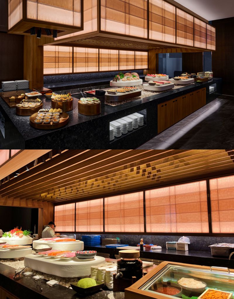 全新開放式日料檯品項倍增,專區擴大2倍,料理品項升級至約30款,以旬味現流與職人手作為特色,結合各餐檯豐富海鮮陣容,推出龍蝦、九孔鮑魚、生蠔、松葉蟹腳、干貝、海膽、假日限定帝王蟹腳等海味佳餚,奢華食材超澎湃,展開一場聚饗百味的世界美食旅程。