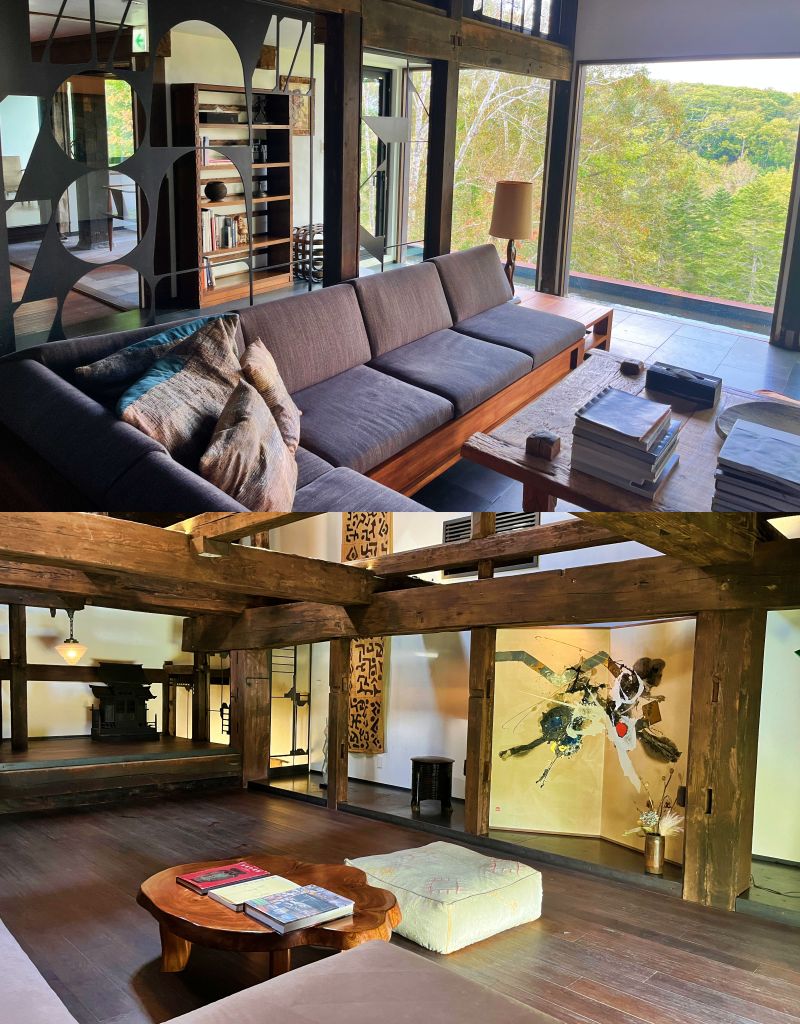 「這些房屋都是150年前日本武士的家屋,從本州各地移築而來,我很喜歡這些的古民宅便買下來。我希望這裡能提供連結,讓賓客感受到歷史與土地的連結,也能展示我的個人收藏品。」在SOMOZA(そもざ)畫廊中,陳列著許多Shouya Grigg以策展人身分蒐集的藝術珍藏品,成為被藝術環繞的住宿空間Gallery Stay。