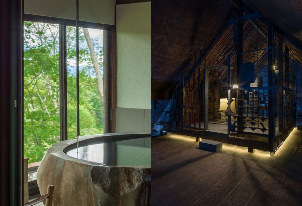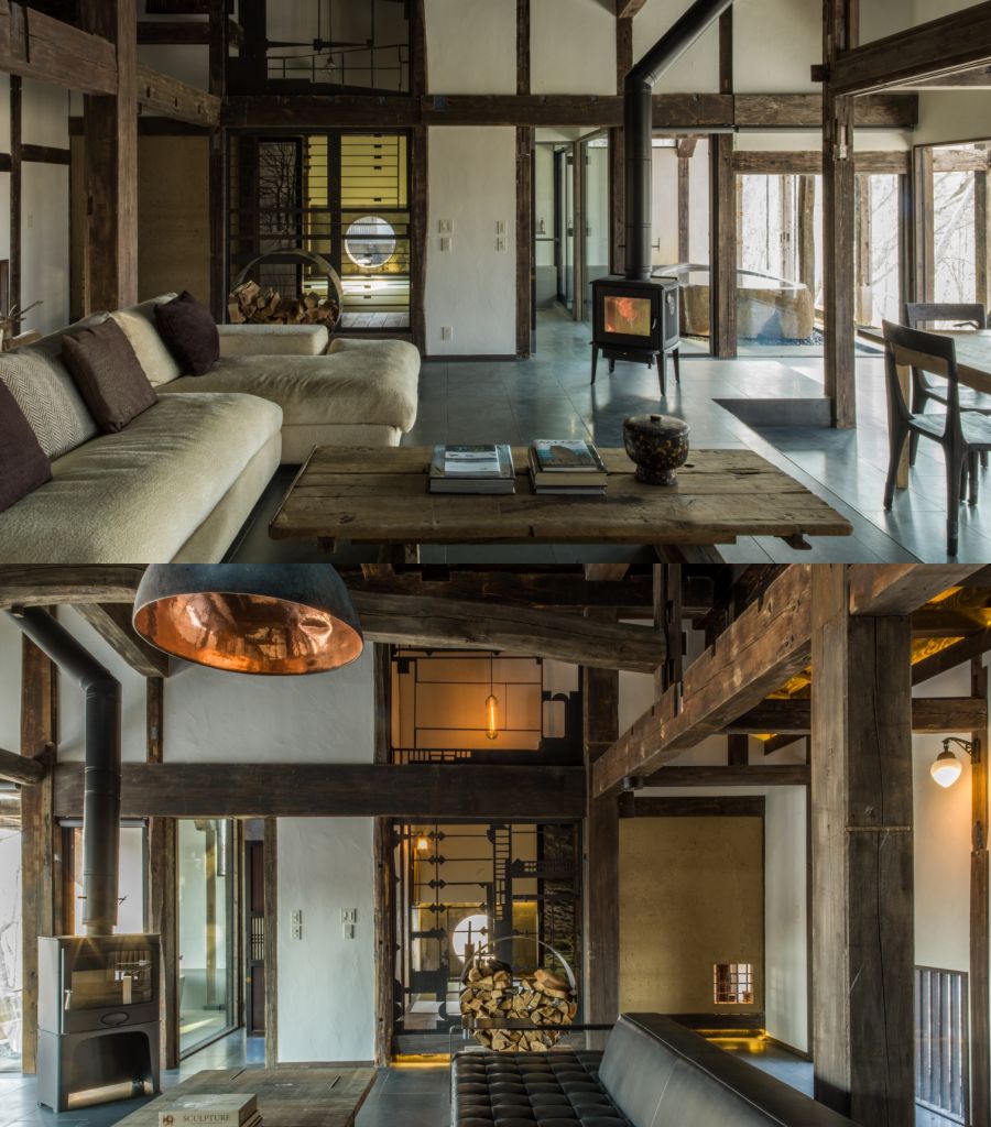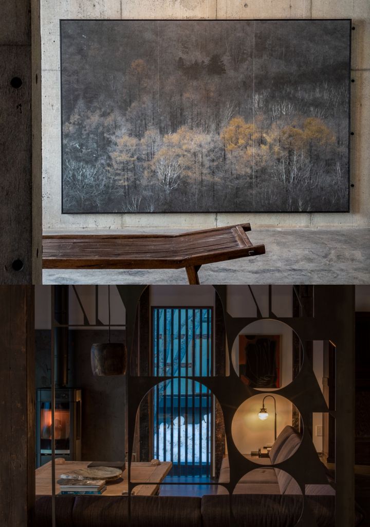 千萬別被古宅的外表騙了,古民家以橡木與檜木的粗大梁柱支撐結構,採用廢棄材料製作拉門與門板,柱子接縫處以鉛金修補工藝,處處展現對自然變化與循環的敬意。每棟別墅都配備了現代化設施且頗具巧思,裝飾著Shouya Grigg的作品及收藏的藝術品。