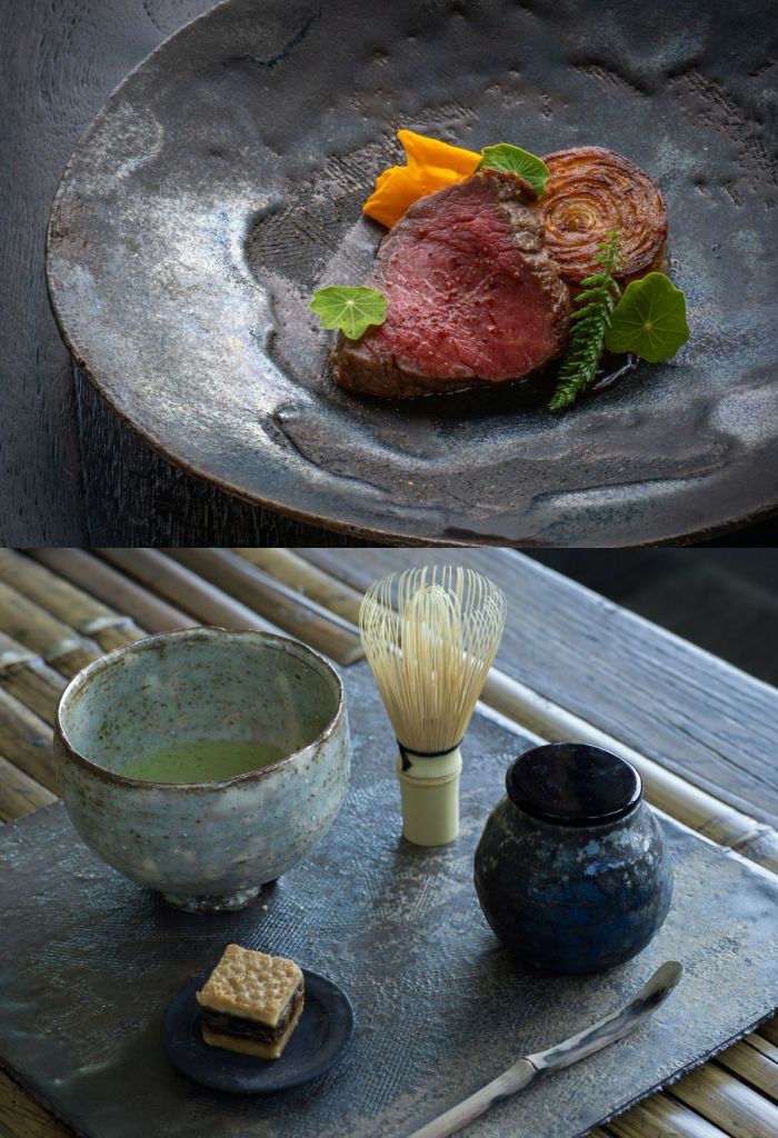 SOMOZA是從栃木縣移築的150年古民家改造,結合餐飲、茶室、畫廊,以職人技法精心呈現每道料理,所用食具全是Shouya Grigg個人收藏精品,陶器皆出自名家作品或本地藝術家之手,搭配美食更顯品味,也為每道料理增添了無限層次感,打造無形的感官體驗。
