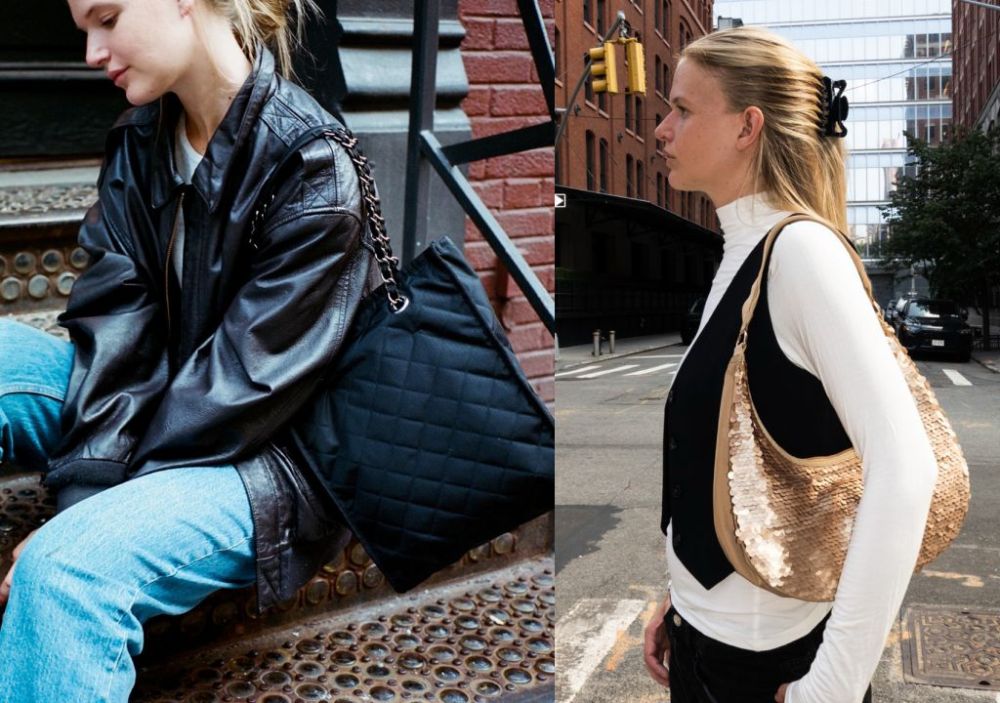 亮片系列細緻層疊打造柔和光澤,微光閃耀日夜魅力,金屬細節與柔光質感展現俏麗優雅。菱格壓紋系列柔軟尼龍搭配金屬鏈條,在質感與時尚間取得完美平衡,打造低調奢華現代風格。