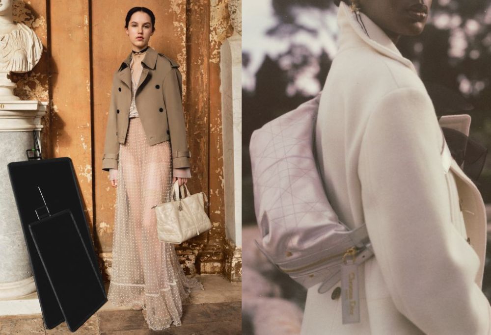 DIOR 2026早春度假系列以20世紀活躍於羅馬、巴黎與紐約的傳奇女性MIMÌ PECCI-BLUNT為靈感核心,她舉辦的白色舞會(LE BAL BLANC)啟發設計主題,延展出以純白、黑色勾邊與閃耀金色為主調色彩語言。巧妙運用不同材質描繪由濃至淡層次語言,從服飾延伸至包款系列設計。