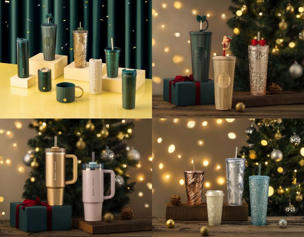 繽紛童趣薑餅屋系列呈現華麗典雅簡約質感,溫暖又充滿節慶氛圍為佳節增添精緻光彩。STANLEY耶誕限定聯名杯款香檳金與夢幻紫2款細緻光澤暖色調呈現低調華麗氛圍,柔和溫暖色調增添閃耀驚喜。Bling TOGO冷水杯運用閃耀金與典雅深綠配色,綴以綠緞帶與可愛薑餅人吸管套,營造浪漫溫馨氣息。