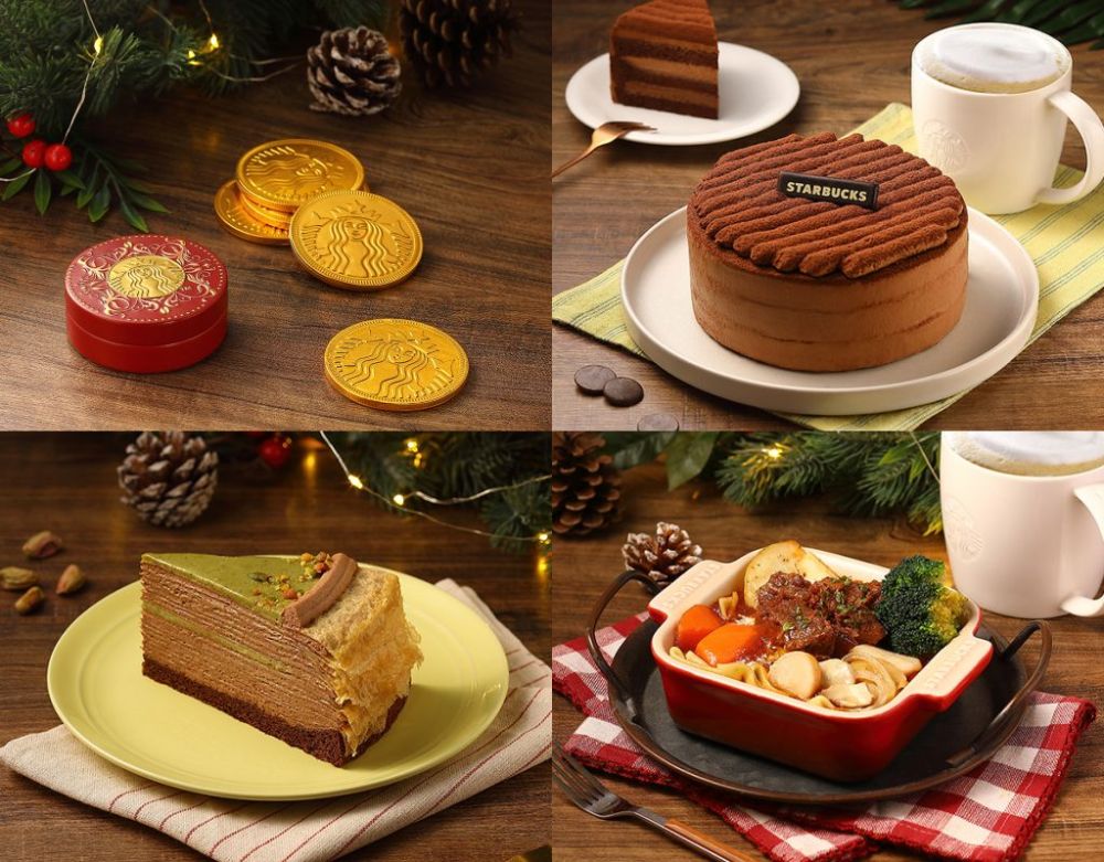 開心果巧克力千層薄餅風味口感香濃滑順,開心果布丁滑嫩雞蛋布丁混入開心果醬,底層灌入巧克力醬。金幣牛奶巧克力盒以星巴克女神金幣造型包裝口感細緻滑順、奶香濃郁巧克力,裝入精緻浮雕設計紅色小圓罐,散發典雅質感節慶感十足,整體象徵圓滿輝煌祝福。