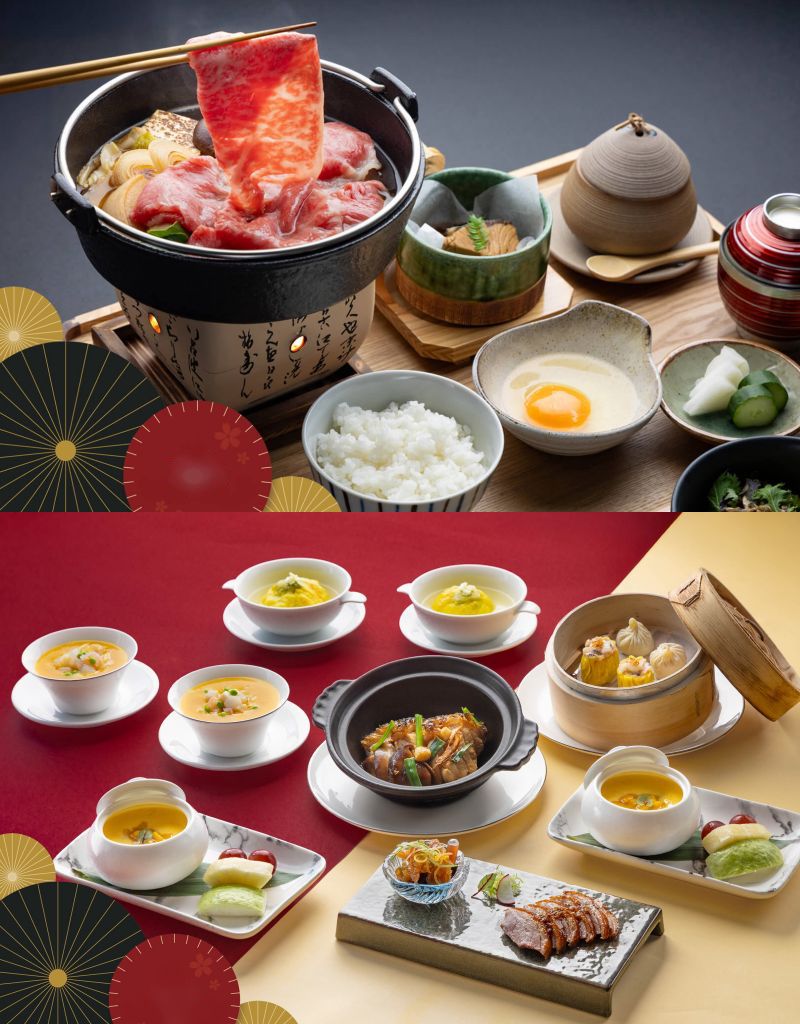咖啡廳迷你高跟鞋下午茶延續高跟鞋珠寶盒下午茶,14款甜鹹點交織呈現周年慶限定甜品饗宴。飛翔日本料理和食午間套餐嚴選旬味食材,獻上海鮮丼飯、牛肉壽喜燒、鰻魚飯等5款主餐選擇。