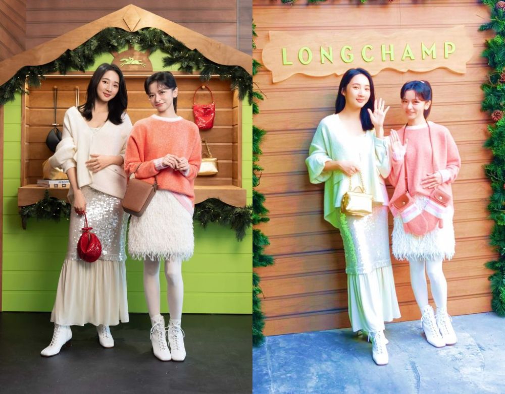 李沐以金屬光澤連身裙搭配柔和色系針織和服外套亮相,手拎LE PLIAGE XTRA系列金屬色包款,展現溫柔卻率性迷人風格。腳上溜冰鞋造型高跟短靴巧妙呼應主題場景,連身裙上亮片隨著燈光如雪中光影般閃耀。她對LE ROSEAU系列幸運餅乾造型手提包印象深刻,「鮮豔紅色為冬日注入一抹熱度與活力。」