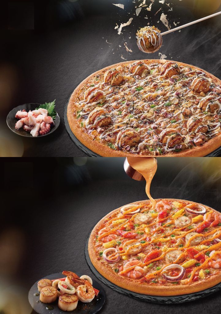 人氣口味章魚燒重磅升級經典美味,以全新面貌丸勝日式章魚燒比薩限定回歸,首創每片比薩放上整顆章魚燒,丸勝日式章魚燒比薩美味升級,舞動的柴魚片與濃郁日式照燒香氣,外酥內軟迸出章魚鮮味,全台限量開賣。