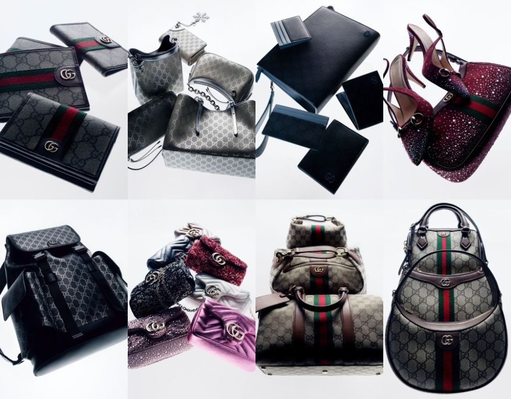 GUCCI OPHIDIA系列包款以GG帆布搭配漸層水鑽熱壓點亮GUCCI經典,GUCCI DIANA及GUCCI JACKIE 1961將漸層水鑽熱壓裝飾紅色絲絨布上搭配GG字母鏈條完美呼應節慶季節。