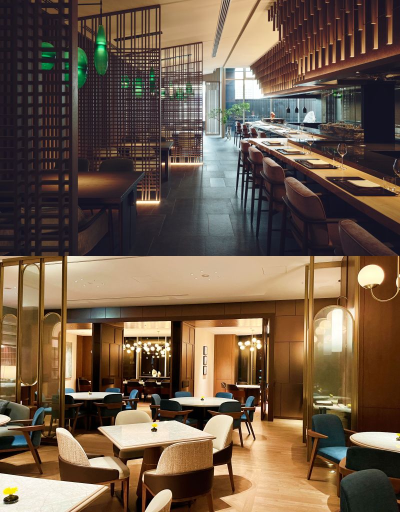 休閒法式全日餐廳從早餐至晚餐全天候供應精緻美食;擁有52席的現代割烹調特色專門店;及設有12個吧台座位與獨立區域的雅緻酒吧酒廊。所有菜餚均在眼前現場烹調,每道料理都將當季風味發揮至極,打造獨一無二的專屬用餐饗宴,將美味體驗提升至全新境界。