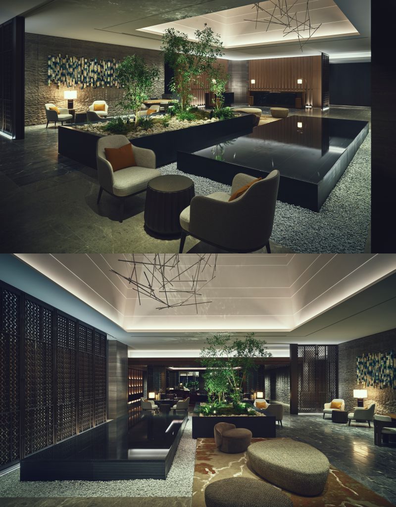 飯店裝璜以簡約風格構築當代輪廓,溫馨質感融入北海道自然元素,交匯出平靜悠然氛圍,與中島公園寧靜景觀相互輝映,每天只需拉開窗廉,便能將這份浪漫盡收眼底。大廳酒廊設有水池,潺潺流水聲營造寧靜祥和氛圍,使用北海道原產木材及天然石材,設計細節完美融合了寧靜與舒適,營造和諧氛圍。