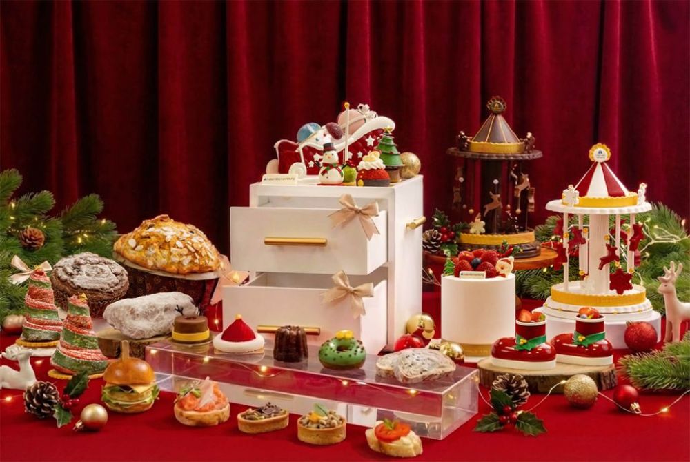 四葉乳霜草莓之心蛋糕以新鮮草莓與綿密乳霜交織,紅&白配色象徵めでたい(值得慶賀)之意,獻上最純粹冬日幸福滋味。期間限定聖誕珠寶盒下午茶組集結巧克力雪橇、聖誕老人泡芙、聖誕帽、聖誕花圈等精緻甜點,每口蘊含節慶喜悅,體驗獻給城市與旅人的聖誕祝福。