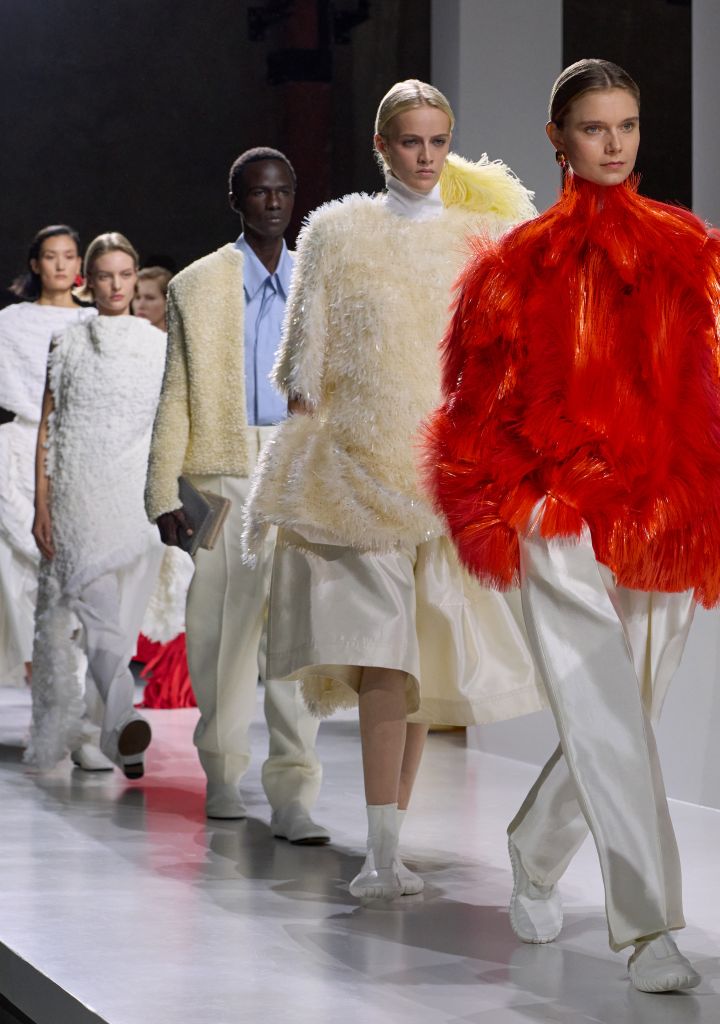 SS系列擁抱工藝浪漫,細枝末節精雕細琢、對古典主義有意解構,工藝與材質被巧妙置換,精準剪裁技術貫穿其中。大量運用輕便夏季訂製面料,注重內在結構,從納帕皮革風衣到棉質襯裡晚禮服,每件都融入傳統男裝裁剪嚴謹與自在。男女裝皆在堅持傳統義式男裝裁剪工坊製作,呈現獨一無二的嚴謹、功能性與精緻細節。