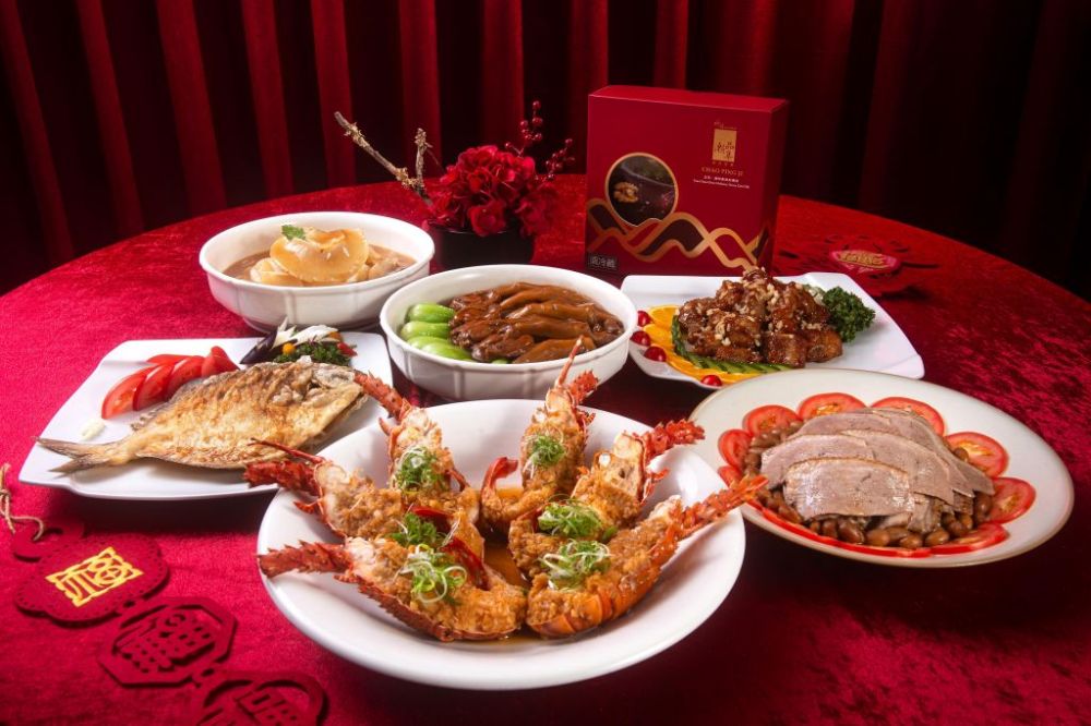 宴會廳再度推出馬年外帶年菜組,比照飯店內用規格精心設計了繽紛五彩盤、蟹粉松花燴長年菜、蒜香葛條蒸龍蝦、三蔥瓜露鯃仔魚、花膠什錦佛跳牆、油淋乾香醬鴨腿佐香蔥餅等7道式功夫料理,口感與口味兼備,適用4~6人團聚份量,輕鬆在家重現星級主廚手藝的年節盛味。