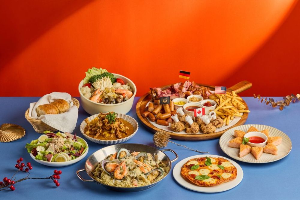 清爽開場尼斯沙拉、象徵好運黃金蝦餅、香辣濃郁咖哩蟹、經典大拼盤澎湃氣勢、象徵豐盛圓滿酸白菜鍋,每道都承載節慶寓意。主食可選擇剝皮辣椒鮮貝燉飯或西班牙海鮮燉飯,讓團聚餐桌更滿足。整套套餐象徵好運全開、好味滿桌,豐富餐點適合6位家人朋友一同享用。
