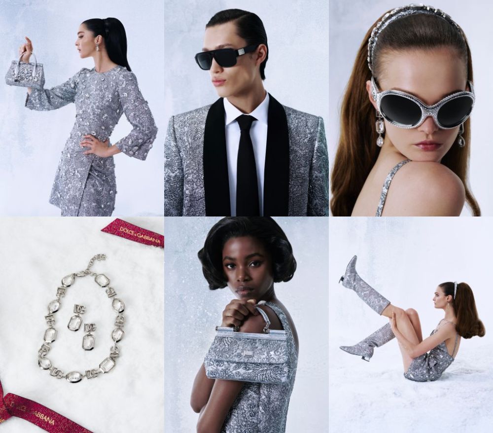 DOLCE&GABBANA華麗呈獻限量2025 HOLIDAY系列,以雪景與冰晶倒影為靈感,捕捉冬日迷人意境。系列在銀白光芒映照下,融合精緻色調與60年代設計靈感,交織出璀璨奪目節日造型。