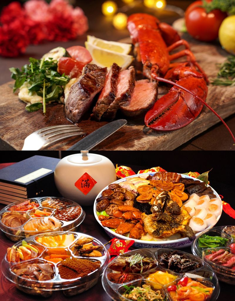 圍爐桌菜主推香氣四溢法式伊比利、湯濃料多頂級鮑魚佛跳牆、蜜汁松坂糯米糕等,吉祥團圓滿堂喜慶。同時推出”馬躍金春 外帶年菜專案”,海味饗宴、中式經典符合多種需求。