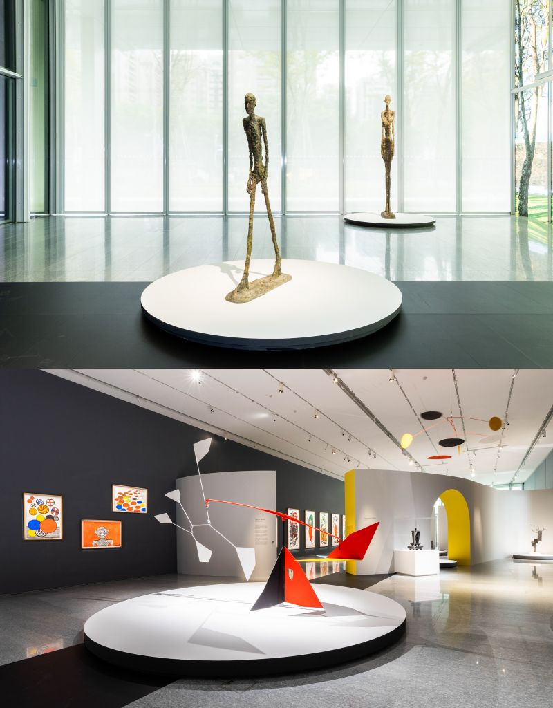 觀眾可見賈科梅蒂難得一見、近3米高大型創作《站立的女人 II》(Femme debout II),及曾刷新雕塑史上最高拍賣價的《行走的人 I》(Homme qui marche I)。米羅首次在亞洲曝光彩繪青銅雕塑《人物》(Personnage)及從未在台露面的巨幅掛毯,形塑充滿節奏與詩性的視覺語言。