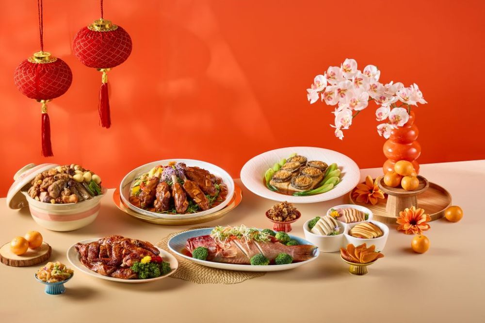 常溫外帶年菜以西式節慶風味為發想,大力金剛腿將厚實Q彈豬腳炸至金黃脆香、肉質飽滿多汁,巨型外觀搭配豪邁份量十分吸睛。BBQ碳烤豬肋排低溫慢烤保留肉質嫩滑多汁,搭配清爽季節烤時蔬,濃厚肉香傳遞團圓時刻豐盛與滿足。