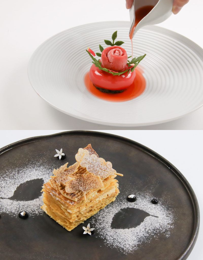 冬季限定草莓三重奏及果香系櫻桃、黑醋栗、柳橙詮釋酸甜口感,帶優雅外型及韻味,層次豐富清爽、馥郁沉穩。咖啡胡桃千層轉化微苦韻味,堆疊出層層迷人香氣。黑櫻桃 紅醋栗 可可脆餅香氣與果味交錯,優雅細膩。