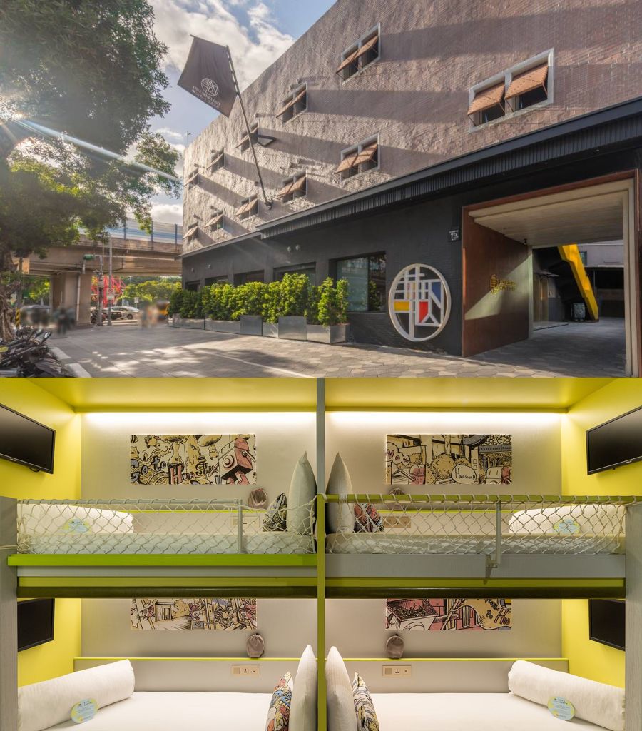 飯店融入銀行元素、製酒文化主題設計,華山4人房特地採用上下舖設計,空間融入金庫門把裝置、獨家金色造型杯、支票樣貌便箋、復古電話機等,營造銀行與1950年代懷舊氛圍,每床獨立個人視聽設備沉浸式休憩空間,讓旅人感受在金庫住一晚的獨特體驗。