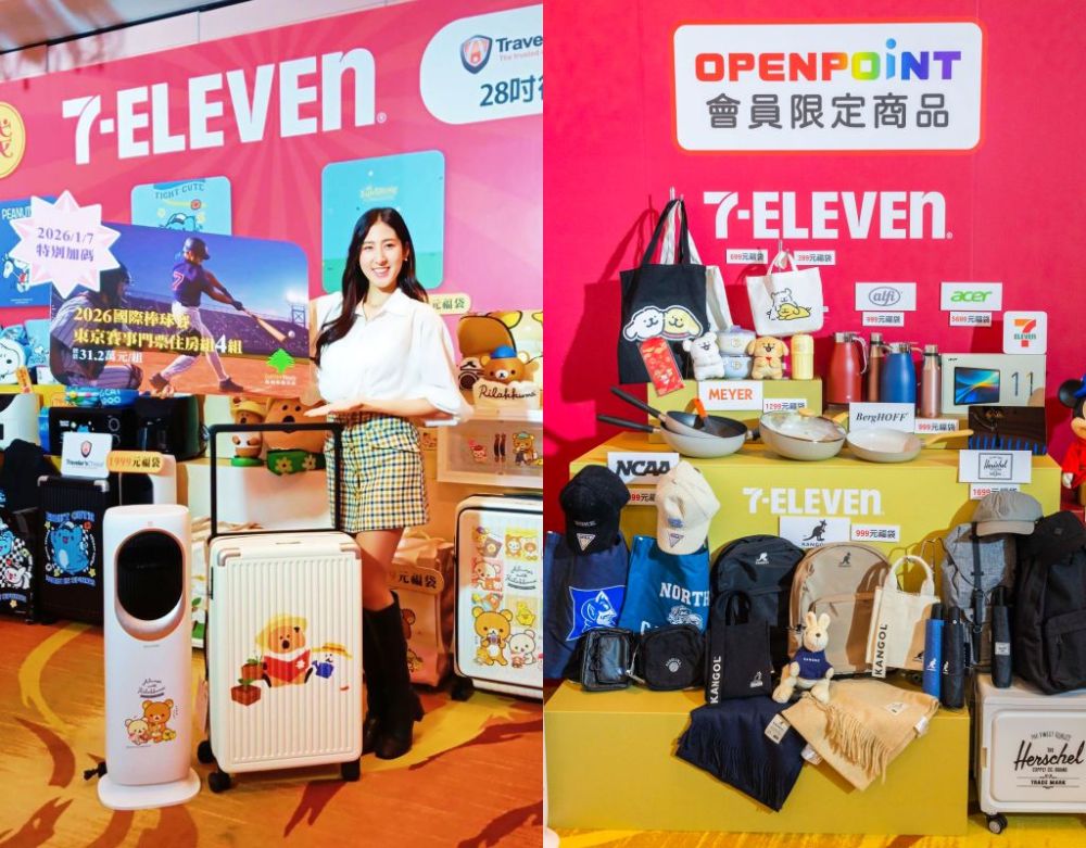 2026迎金馬年開運,7-ELEVEN第一波開春福袋門市現貨肖像福袋、歡樂包及OPENPOINT APP限定精品福袋,逾130款豐富商品數量,攜手10大話題肖像及10大生活精品品牌,全台共推出限量32.3萬個全新高價值感開運實用品組合。
