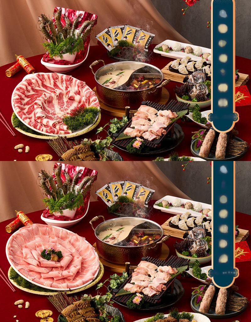 圍爐食材陣容華麗升級,直接把海陸全餐搬上桌,特別在肉品雙拼加量升級,海鮮陣容更是華麗。馬馳好運年團圓套餐一次享有美國精選五花牛與雪花牛雙重油脂香氣;馬上富豬迎新歲套餐選用西班牙伊比利豬搭配台灣梅花豬,肉質鮮嫩入口即化。