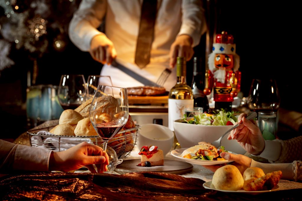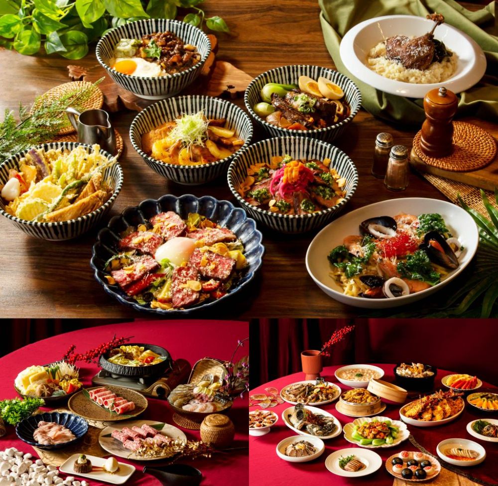 過年期間主打溫馨小型傳統家宴,中式宴席10道應景佳餚以年節吉祥寓意為主軸,透過一道道料理傳遞富足、健康與繁榮祝福,為團圓時光增添儀式感。特定餐期推出新春聚會節慶菜單,海膽鮮蝦義大利麵、西瓜綿油封鴨腿燉飯及燒烤牛小排丼飯等多樣選擇,並貼心提供蔬食火鍋。