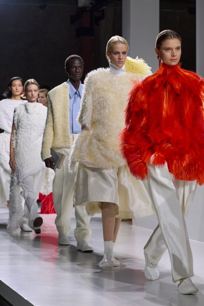 大量運用輕便夏季訂製面料,注重內在結構,從納帕皮革風衣到棉質襯裡晚禮服,每件都融入傳統男裝裁剪嚴謹與自在。男女裝皆在堅持傳統義式男裝裁剪工坊中製作,呈現獨一無二的嚴謹、功能性與精緻細節。