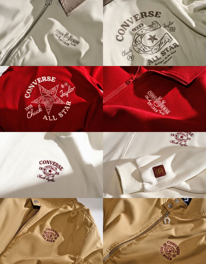 翻領外套融入前後刺繡與開運蹄鐵圖騰;立領夾克徽章織標暗藏福運,挺括領型與縮口剪裁帶來俐落外觀。襯衫涵蓋純色與棋盤格2種風格,運動大學T胸前徽章與袖口金線,領口與袖擺疊穿設計增添穿搭趣味。高領毛衣飾有開運蹄鐵圖騰刺繡,輕鬆提升冬日搭配層次感。