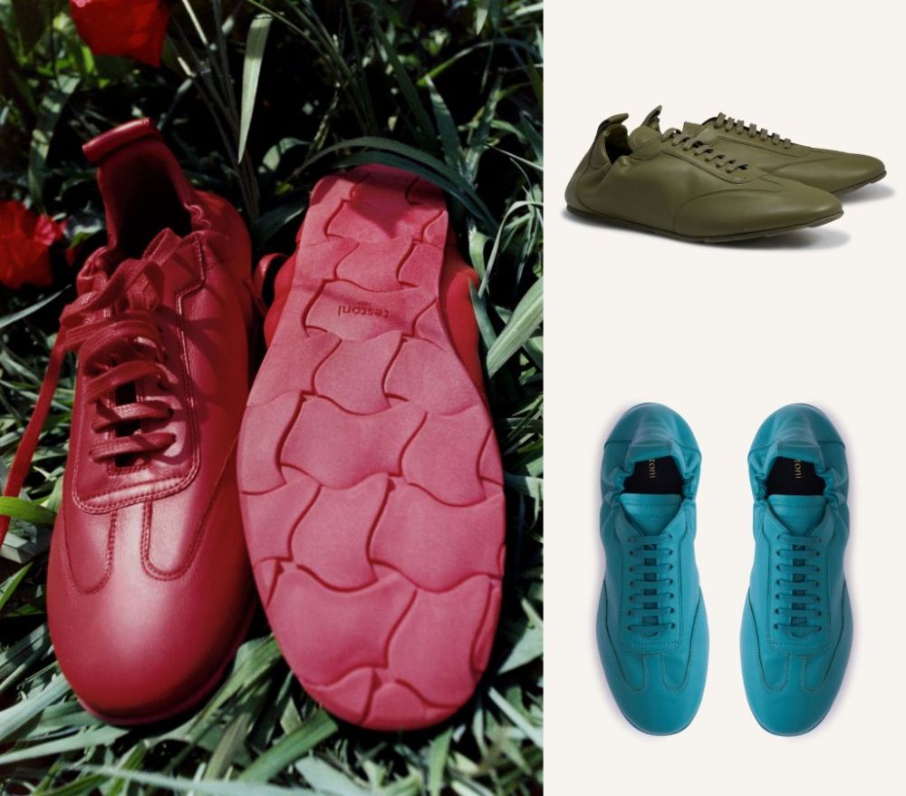 採用柔軟小羊皮革製作,能舒適貼合雙足;內裡設計著重靈活度與長時間穿著舒適性。橡膠鞋底輕盈耐用,提供支撐又保持極佳行走體驗。鞋底設計源自典藏檔案INTRECCIO波浪編織元素,低調呈現,成為當代語境下傳承符碼細膩演繹。