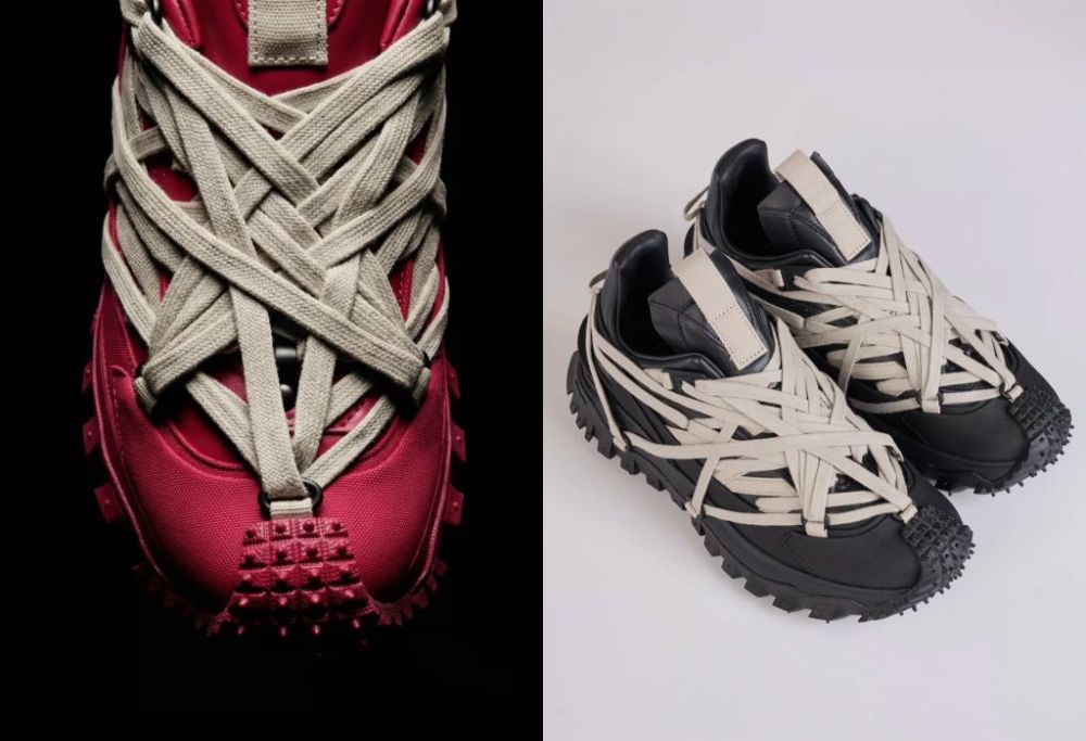 MONCLER+RICK OWENS 2026年春夏系列帶來多個破格造型,蘇格蘭裙式短褲與俐落不對稱針織半截裙,配搭同色系爬山襪與TRAILGRIP MEGALACE運動鞋,靈活配合穿梭都市到野外探索。
