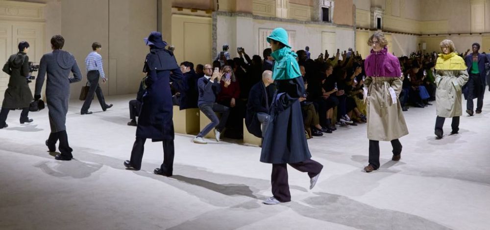 男裝優雅準則穿越實用與風格、傳統與自由之間獨特平衡,色彩圍繞中性與深暗色調展開,強化濃郁深邃色彩。肌理與圖樣昇華材質之美:看似單一面料呈現立體織理;粗花呢與多尼戈爾面料永恆魅力通過精緻色彩、高貴輕盈纖維重新詮釋。