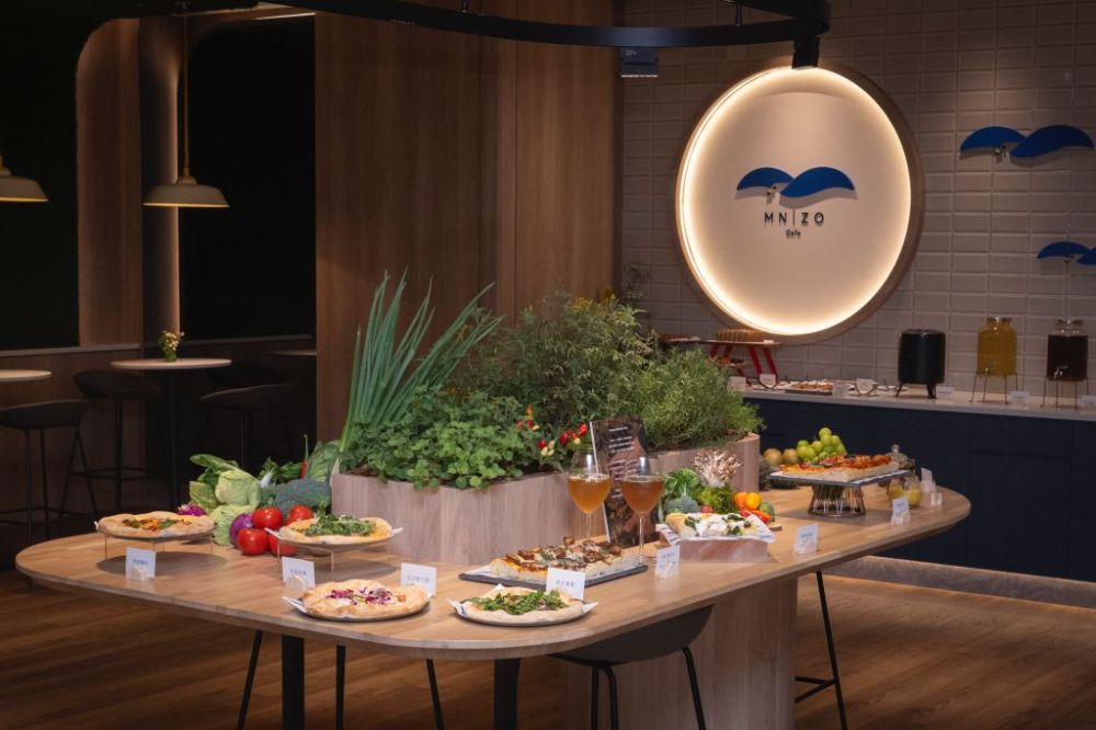 1樓MN|ZO CAFÉ&PIZZA以自然發酵為核心,烘焙採二次發酵技法,料理延續地中海飲食精神,以橄欖油、蔬菜、堅果、香料與乾貨番茄等元素平衡呈現,強調低負擔、高營養密度飲食方式,每款風味都著重提升食材原味。