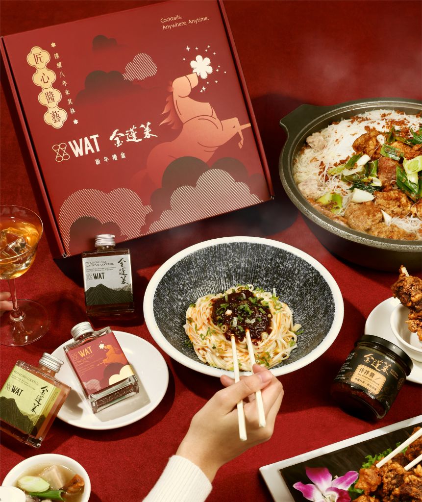 WAT瓶裝雞尾酒再度攜手米其林星級金蓬萊台菜餐廳推出2026新年限定”匠心醬藝 新年禮盒”,微醺調酒搭配職人拌醬,從特色調酒出發,為年節餐桌帶來微醺輕鬆飲用選擇。