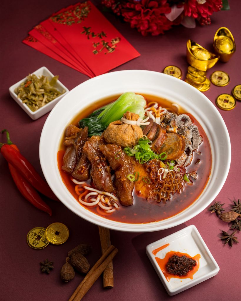 開運牛雜麵將祝福化為各項食材:金錢肚代表財富,祝大家金銀滿屋;牛套腸”層層富貴”,牛百頁”百業興旺”,滑順牛筋”好腦筋”,大塊牛肉”身強體健”,還有手工精製福袋”萬事圓滿”。大啖這碗集結多種寓意吉祥的美味,一起走春討吉利,平安順利過新年。