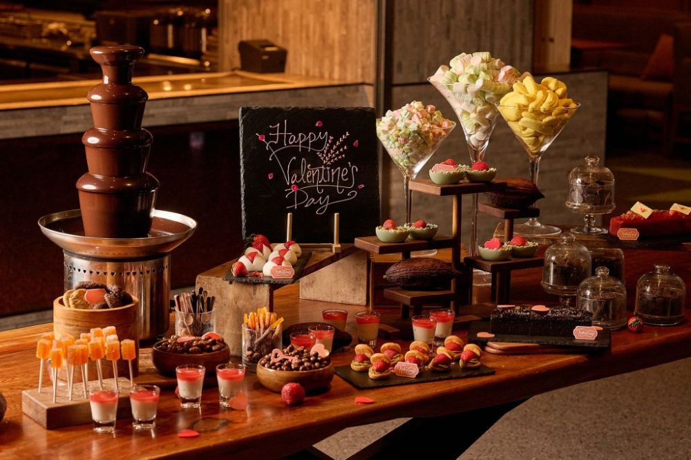 台北松山意舍酒店QUE原木燒烤餐廳推出期間限定”幸福情人饗宴", 以粉色為主要視覺,帶來粉紅泡泡幸福感受。原木直火燒烤原汁原味熱情溫度,結合豐盛多樣餐檯設計,打造一場從主餐到甜點都充滿儀式感的浪漫晚餐。