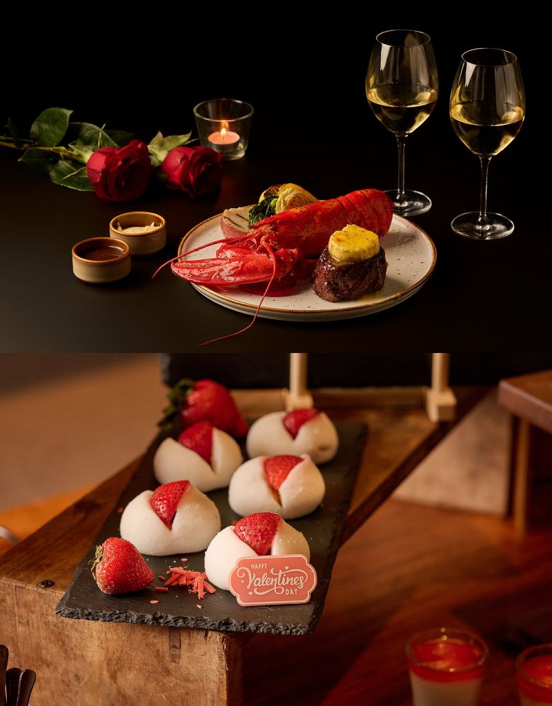 情人節期間特別推出雙人分享主餐,以原木燒烤雙主食展現高級食材極致風味。7盎司原木燒烤美國菲力牛排佐番紅花奶油醬自然呈現粉紅色,搭配原木燒烤整隻活波士頓龍蝦佐檸檬奶油醬,鮮甜海味與奶油香氣交織,完美詮釋浪漫大餐經典組合。另附粉紅氣泡酒為甜蜜夜晚增添微醺氛圍。