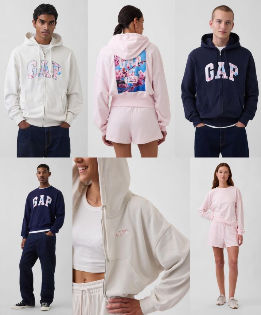 GAP日本限定SAKURA櫻花系列服飾首度登台,選用柔和色彩與櫻花圖樣,巧妙融入標誌性LOGO與休閒輪廓,為經典美式風格注入溫柔細膩日系感性。