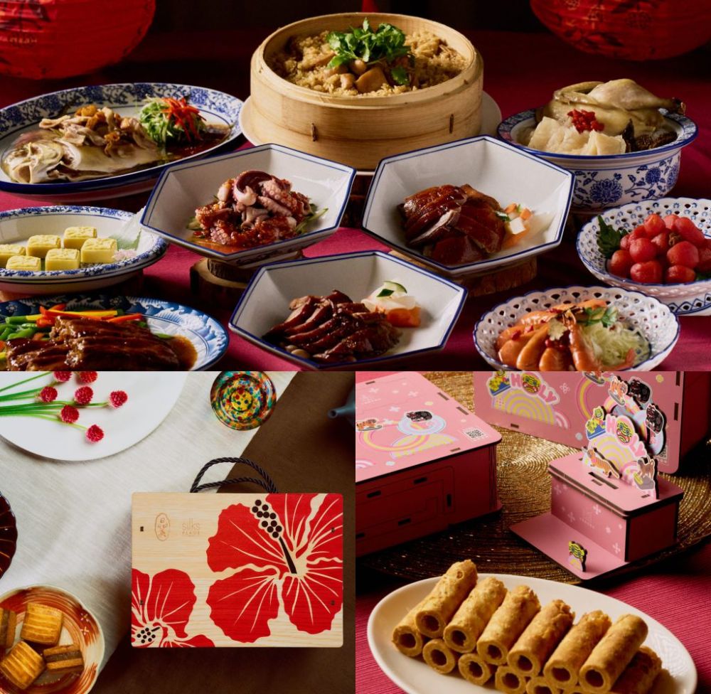 外帶年菜涵蓋中西式菜餚,簡單覆熱即可上桌,輕鬆享用星級料理。西式菜餚由ROBIN’S主廚操刀,透過美食送上新春祝福。走春質感伴手禮強打東方風韻鳳梨酥禮盒及攜手HOLY YA獨家聯名”HOLY晶虎爺-金沙蛋捲”(吼哩晶厚野,讓你真有錢)蛋捲禮盒,盒內盛裝鹹香刷嘴金沙蛋捲,為新年增添更多財運及好福氣。