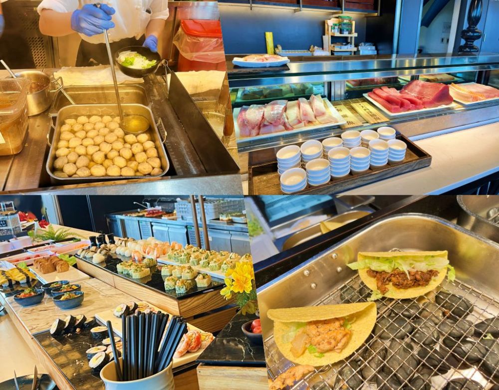 “大和.雅集"匯集新鮮現切生魚片、職人炙燒握壽司與現點現做手捲,多道日式經典料理,呈現細膩雅緻和風美學,讓各國經典風味在此交會靠港。