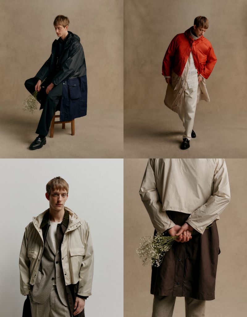 ENDURANCE休閒外套靈感源自ENDURANCE JACKET,融入軍裝派克大衣輪廓線索,整體呈現俐落長版線條,兼顧實穿性與造型比例。外層搭配1件輕量材質製作短版連帽外套,比例靈感取自SPEY JACKET,延續工藝精神與實用機能。