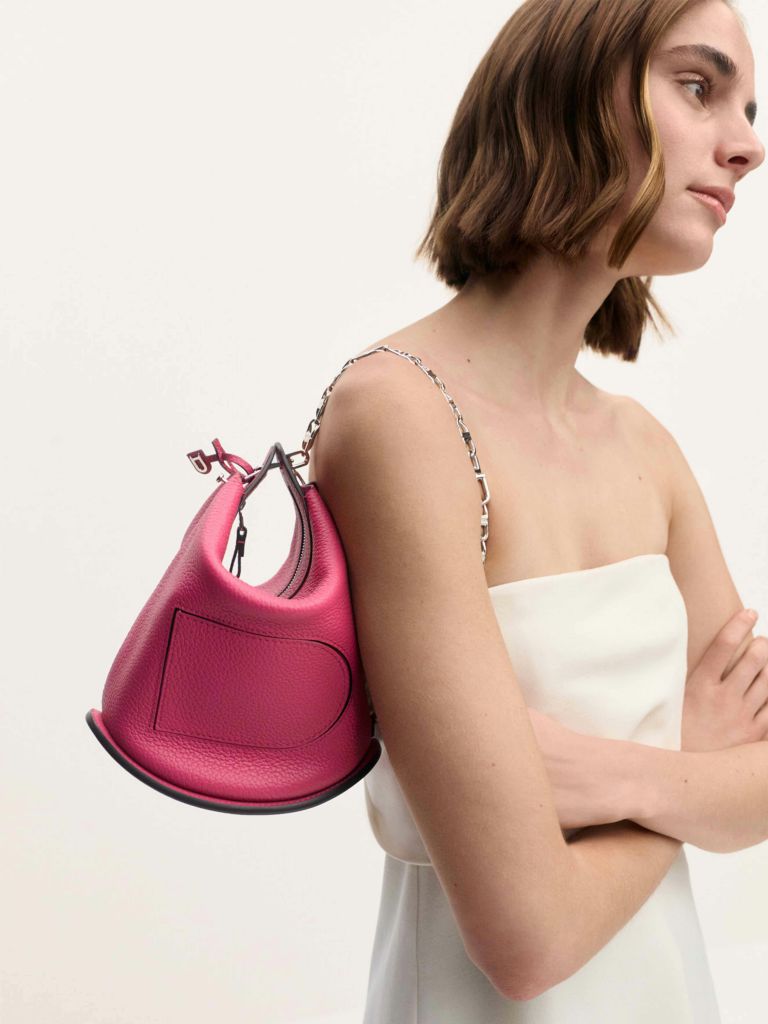 PIN TWIST手袋以靈動獨特設計展現優雅俏皮魅力。亮眼西瓜紅色搭配皮革肩帶與2條短鏈帶,可輕鬆切換多種背法,從容應對各種場合。