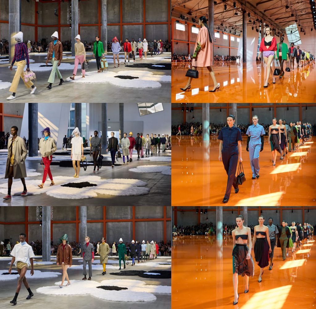 PRADA 2026春夏系列女裝秀BODY OF COMPOSITION對當代文化過度氾濫的回應~一場透過服裝進行淬鍊與精化的過程。不同元素分散與重聚,出人意料且未曾預期於身體上互相交織,並置在此成為一種創造行為。