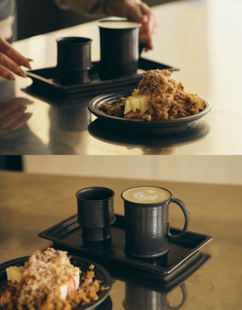 Ernst Memorial Hall地衣荒物訂製Ironware系列器皿,透過擬仿鐵器漆黑、光滑質地,營造精簡純粹工藝之美,將這份詩意延伸至指尖觸感,在品飲之間親身感受到質地、造型與空間交織出氛圍厚度,數位工藝與老宅記憶共生,在咖啡領域實現更完整專業呈現。