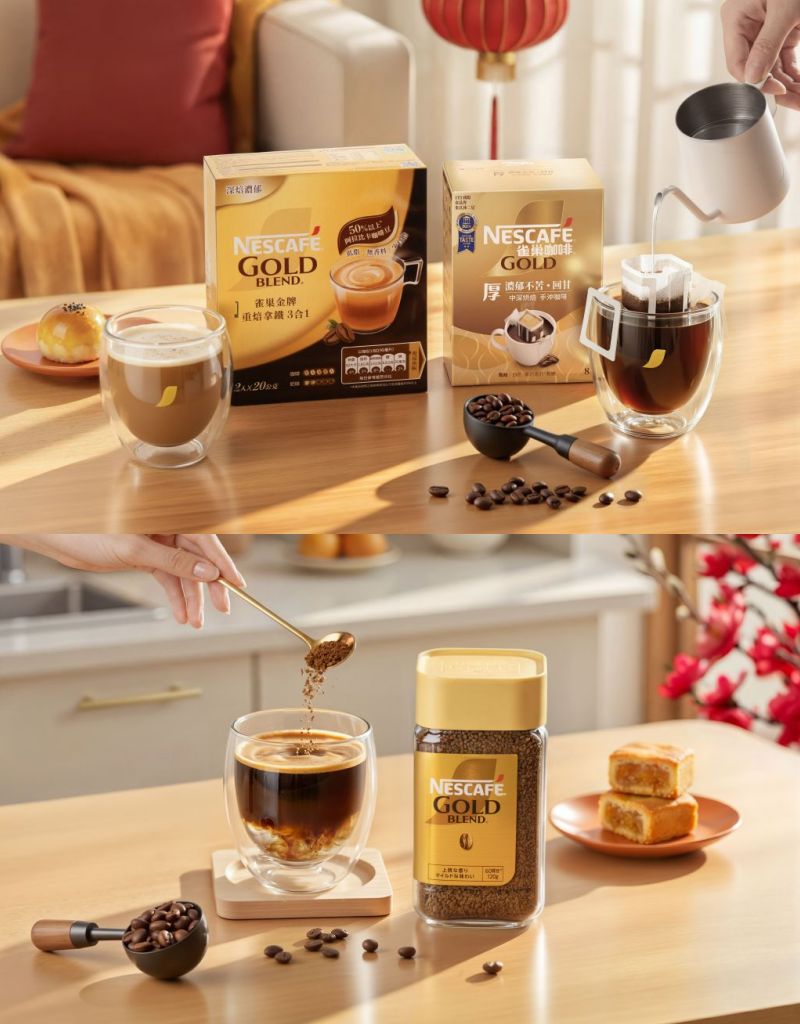NESTLE雀巢金牌咖啡推出3款咖啡解方,讓年節時光”啡"比尋常。”金牌微研磨即溶咖啡”香氣一沖瞬間綻放;"金牌重焙拿鐵"輕盈解膩,層次細膩適合細品。闔家團圓之際,用杯高品質咖啡點亮新歲,完美享受新春時光!